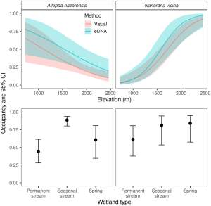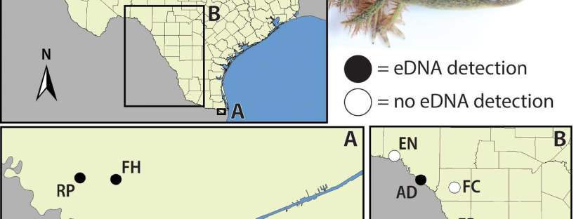 The Black-spotted Newt (Notophthalmus meridionalis) is a chronically understudied salamander species, with many aspects of its natural history, ecology, and distribution poorly known. Previous studies using traditional methodologies have had limited success documenting N. meridionalis on the landscape, detecting individuals at 6% (7 of 114) and 1% (2 of 221) of sites surveyed. A novel environmental DNA (eDNA) assay was designed and implemented with the goals of assessing the current distribution of N. meridionalis across south Texas, USA, and better understanding the conditions for positive eDNA detections. We conducted eDNA sampling and traditional surveys at 80 sites throughout south Texas. Notophthalmus meridionalis was detected at 12 localities in total: four localities using eDNA surveys, four localities using traditional methods, and four localities with both methodologies. eDNA detections were obtained from five counties, including one where N. meridionalis has never been reported and another where N. meridionalis has not been observed since the 1930s. eDNA detections were obtained in all four seasons, generally following moderate to heavy rainfall events. Our results support the increased use of eDNA surveys to detect rare and cryptic amphibians and to better understand the current distribution of this imperiled species.