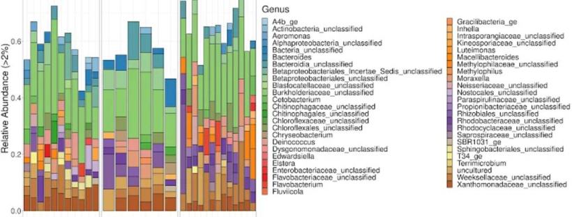 Turtle populations around the world are continually confronted with changing environments that affect their ecology and conservation status. Among freshwater turtles, population dynamics are thought to be mediated by complex yet often cryptic causes. One recent direction of focus in addressing these causes is the turtle-associated microbiota. In turtles, the gut-associated microbiota is of exceptional interest due to its continual association with host species under changing conditions. Diet-based fluctuations and changes in microbial diversity may correspond to varying external environments at both the individual and population level. Environmental responses are of particular interest due to the anthropogenic changes that may underlie them. Pollutants, disruption of climatic patterns, and habitat fragmentation all have the potential to affect turtle-associated microbiota and subsequent population and species conservation. To better understand potential human-induced changes, the diversity of turtle-associated microbiota over local spatial gradients must be better understood.We examined microbial community a- and b-diversity among 30 adult False Map Turtles (Graptemys pseudogeographica) at three sites within the lower Missouri River, United States. Our results indicate significant microbial community centroid differences among sites (b-diversity), which are likely mediated by various local environmental factors. Such factors will have to be carefully considered in any future attribution of anthropogenic determinants on turtle-associated microbiota as it relates to turtle population dynamics.