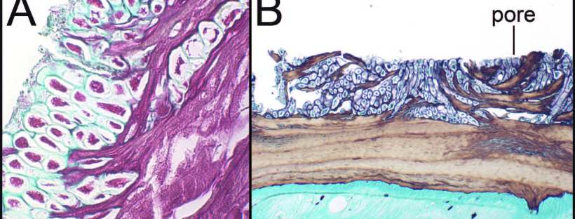 While shell diseases may be often encountered in captive aquatic turtles maintained in less than optimum conditions, cases of nonulcerating shell disease in wild populations are rare. We discovered lesions on the carapace of individual Kinosternon flavescens (Yellow Mud Turtle) adapted to a highly aquatic existence in the artificial ponds of a cattle ranch in the Chihuahuan Desert of west Texas. Because the carapacial lesions seemed to represent a continuum of a single process, we followed the gross changes in the lesions on turtles over a 13-yr period, testing the hypothesis that we were seeing a progressive shell disease. We confirmed our working hypothesis as we observed Arnoldiella chelonum, a common, filamentous alga, protruding from enlarged pores in newly formed shell and growing under translucent shell lamellae. As the disease advanced, our gross and histological studies revealed that algae were found between more of the shell lamellae, eventually culminating with sloughing of lamellae. Erosion of lamellae led to a localized but complete loss of portions of the scute and exposure of underlying bone. We provide data on the occurrence of this condition among the marked population and progression of the lesions to more-severe forms in individual turtles. Studies of specimens in research collections provided evidence of our observed disease process in K. flavescens across time and throughout the distribution of the species in Texas. We suggest that, by capitalizing on permanent artificial water sources, K. flavescens has serendipitously allowed A. chelonum to invade and damage the nonliving portion of the shell.
