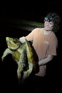 Research Overview: I am conducting surveys for four species of imperiled turtles in southwestern Indiana: River Cooter, False Map Turtle, Smooth Softshell, and Eastern Mud Turtle. Additionally, I will estimate population sizes and summarize demographic data on these focal species, identify high-quality nesting sites and hot-spots of species abundance and diversity for future conservation action, and engage with the public to generate observations of focal species that will help guide sampling efforts. I am also working on projects documenting the spread of the Common Wall Lizard (Podarcis muralis) along the Ohio River, the diet and parasites of non-native house geckos (Hemidactylus) in south Texas, and the prevalence of amphibian pathogens in an introduced population of Rio Cauca Caecilians (Typhlonectes natans) from south Florida.